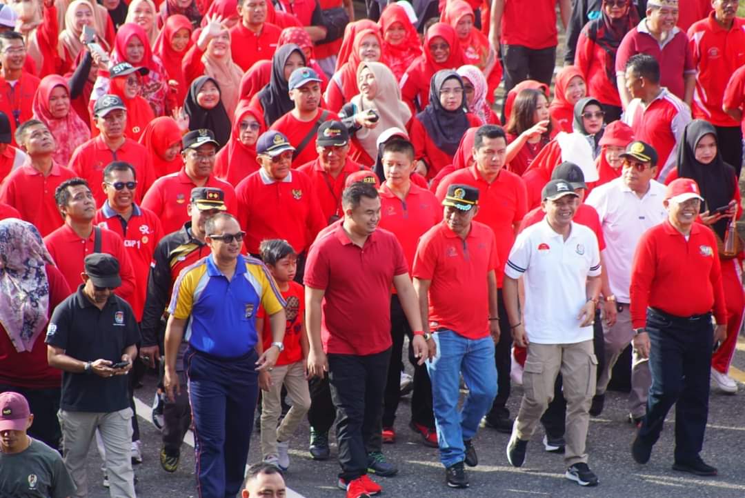 Langgam.id – Dalam rangka memeriahkan peringatan Hari Ulang Tahun ke-20 Kabupaten Dharmasraya, Pemerintah Kabupaten Dharmasraya menggelar berbagai rangkaian kegiatan. Salah satunya adalah kegiatan jalan santai yang diikuti oleh Bupati Dharmasraya, Sutan Riska Tuanku Kerajaan, Sekda, Adlisman, Kapolres, Forkopimda, seluruh ASN, guru, siswa tingkat SD, SMP dan SMA se-Kecamatan Pulau Punjung dan undangan lainnya.