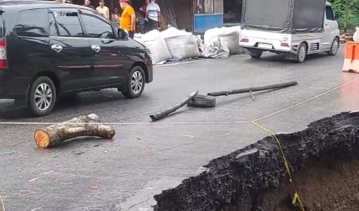 “Jalan amblas akibat irisan air hujan. Sehingga untuk jalur kami berlakukan buka tutup,” kata Afrizal, Sabtu (20/4/2024).