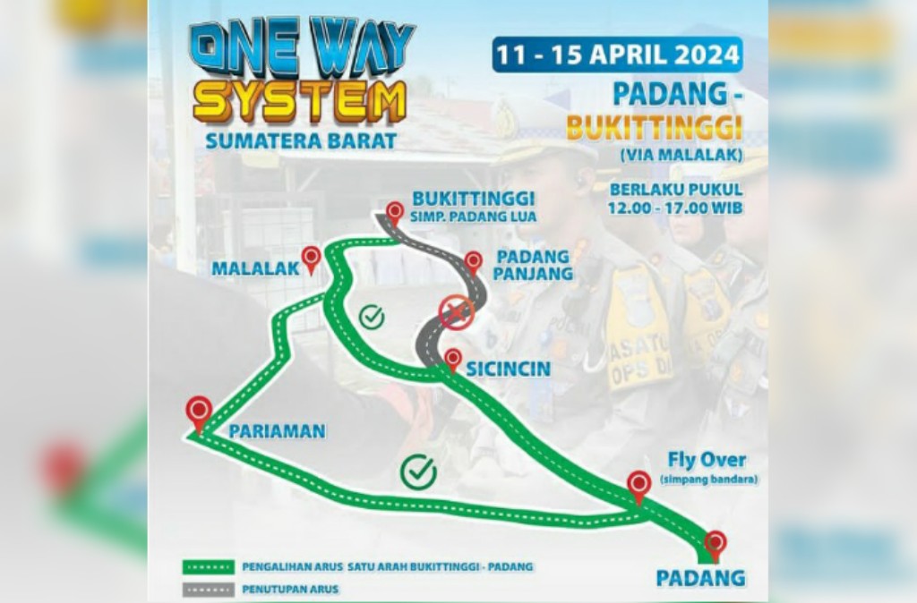 Dilansir dari akun Instagram Ditlantas Polda Sumbar, untuk rute one way pada 11-15 April 2024 yaitu: