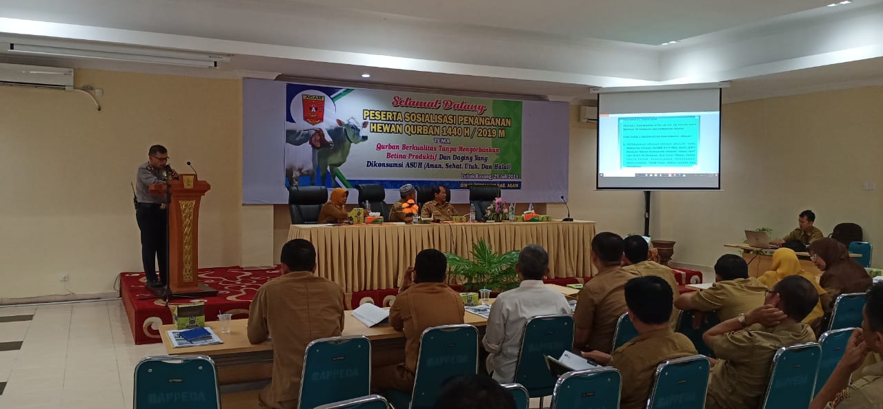 Langgam.id – Kabupaten Agam menggelar sosialisasi penanganan hewan kurban menyambut Idul Adha 1440 Hijriah, Senin (29/7/2019). Sosialisasi ini dihadiri Waka Polres Agam, seluruh wali nagari dan penyuluh kesehatan hewan di daerah tersebut.