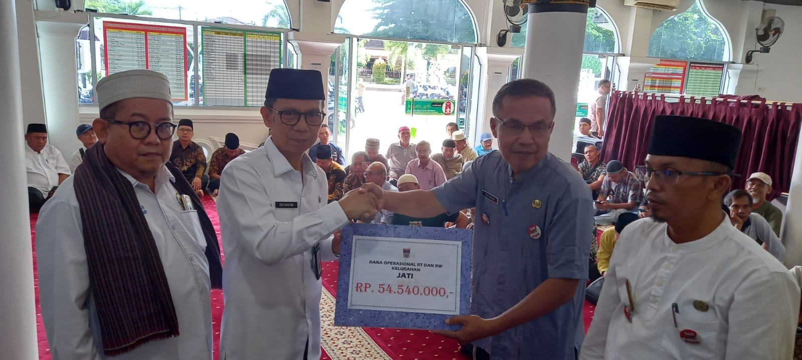 Langgam.id – Pemerintah Kota Padang melakukan pencairan dana operasional RT dan RW se Kecamatan Padang Timur jelang Lebaran tahun ini. Dana operasional ini diserahkan Wali Kota Padang yang diwakili Asisten I Setdako, Edi Hasymi di Masjid Baitul Hadi, Kelurahan Parak Gadang Timur.