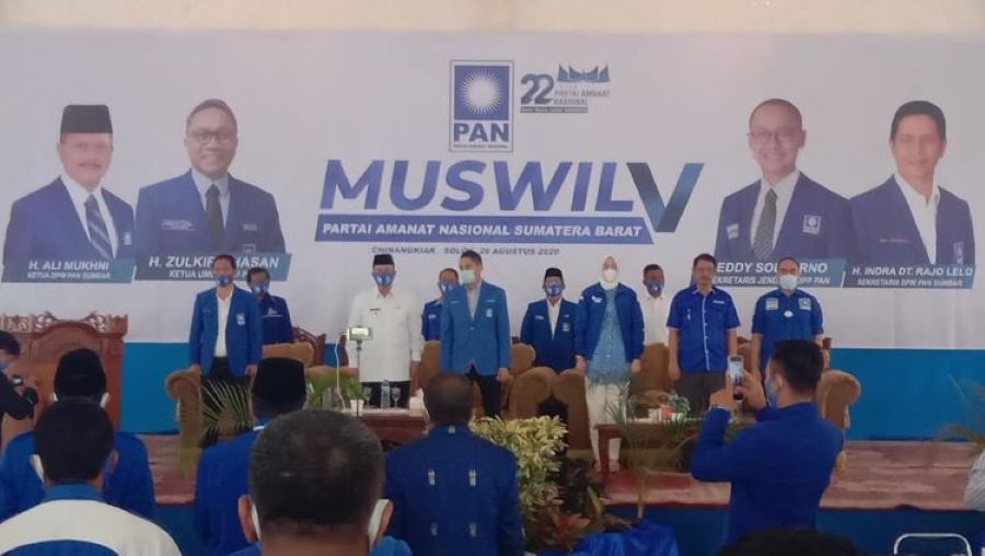 Indra Dt Rajo Lelo terpilih dan ditetapkan dalam pelaksanaan Muswil V PAN Sumbar di Bukik Chinangkiek, Kabupaten Solok, Rabu (26/8/2020). Muswil yang turut dihadiri Ketua POK (Pembinaan Organisasi dan Keanggotaan) DPP PAN Ahmad Mumtaz Rais juga memilih dan menetapkan Ketua Dewan Pimpinan Wilayah (DPW) PAN Sumbar serta Ketua Majelis Penasihat Partai (MPP) dan periode 2020-2025.