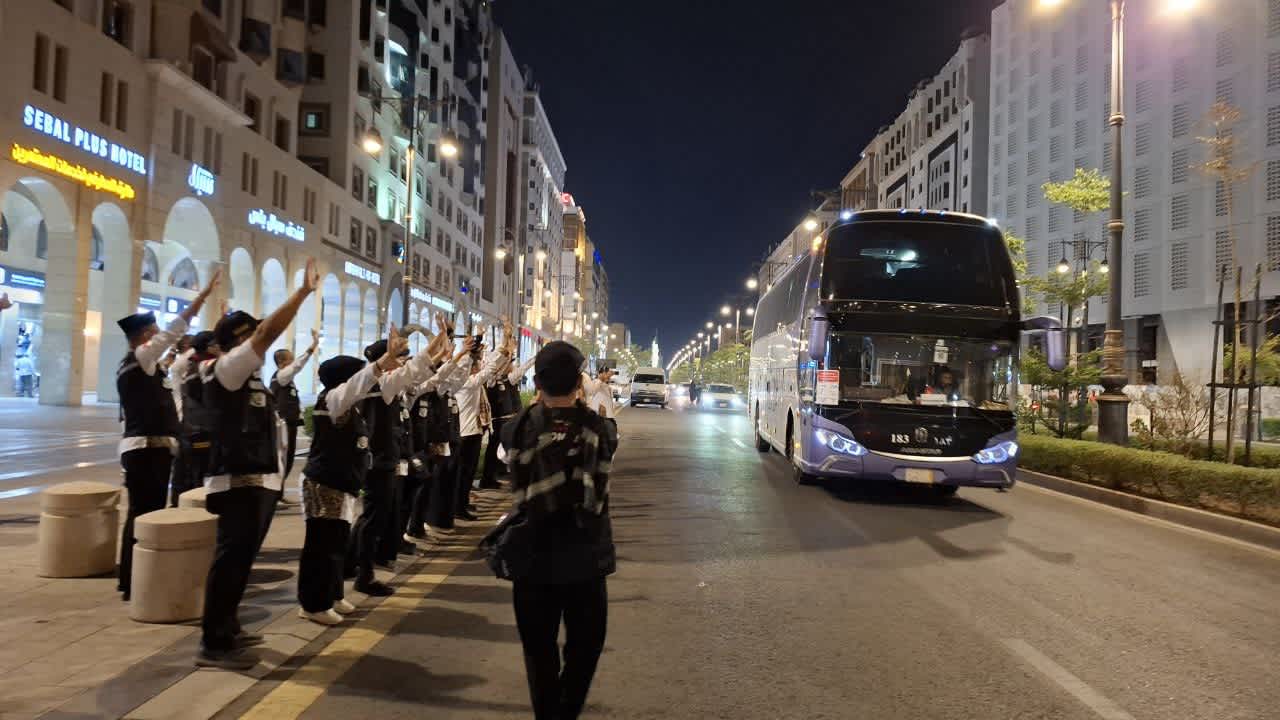 Sekitar pukul 23.30 WAS, satu persatu bus yang membawa 443 jemaah ini mulai beranjak pergi. Para petugas haji yang ada di lokasi pun tak lupa melambaikan tangan sebagai ucapan ucapan selamat jalan.