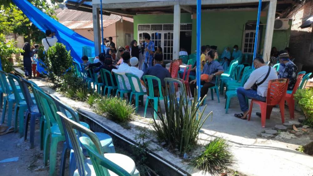 Sebuah tenda didirikan dan ada puluhan kursi di depan rumah Angga untuk duduk para pelayat. Bendera hitam tanda kematian juga didirikan di gang kecil menuju ke rumah Angga.
