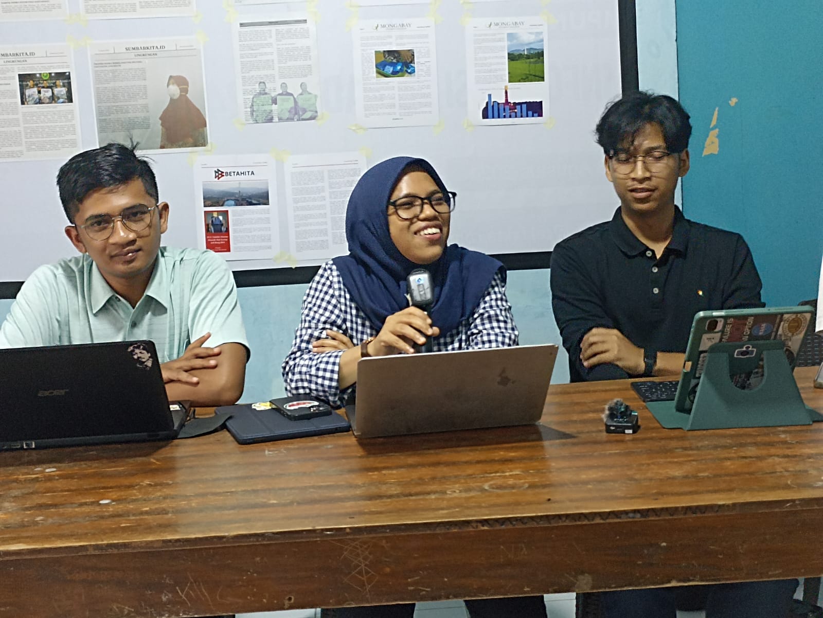 Konferensi pers tersebut diadakan oleh LBH Padang dan menghadirkan narasumber Juru Kampanye Trend Asia, Novia Indri dan Penasehat Hukum dari LBH Padang, Alfi Sukri dan Adrizal.