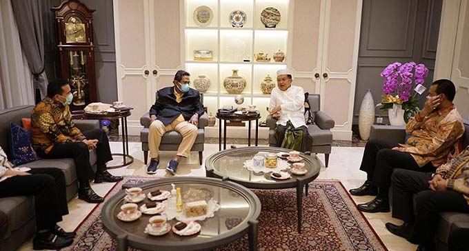 Langgam.id- Mantan Wakil Presiden Indonesia Jusuf Kalla menerima kunjungan silaturahmi, bakal calon pasangan gubernur dan wakil gubernur Sumatra Barat (Sumbar) Fakhrizal-Genius Umar di kediamannya, Sabtu (12/9/2020) malam.