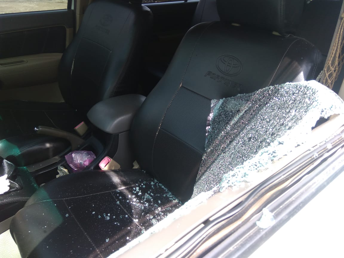 kaca mobil warga Muara Panas pecah (ist)