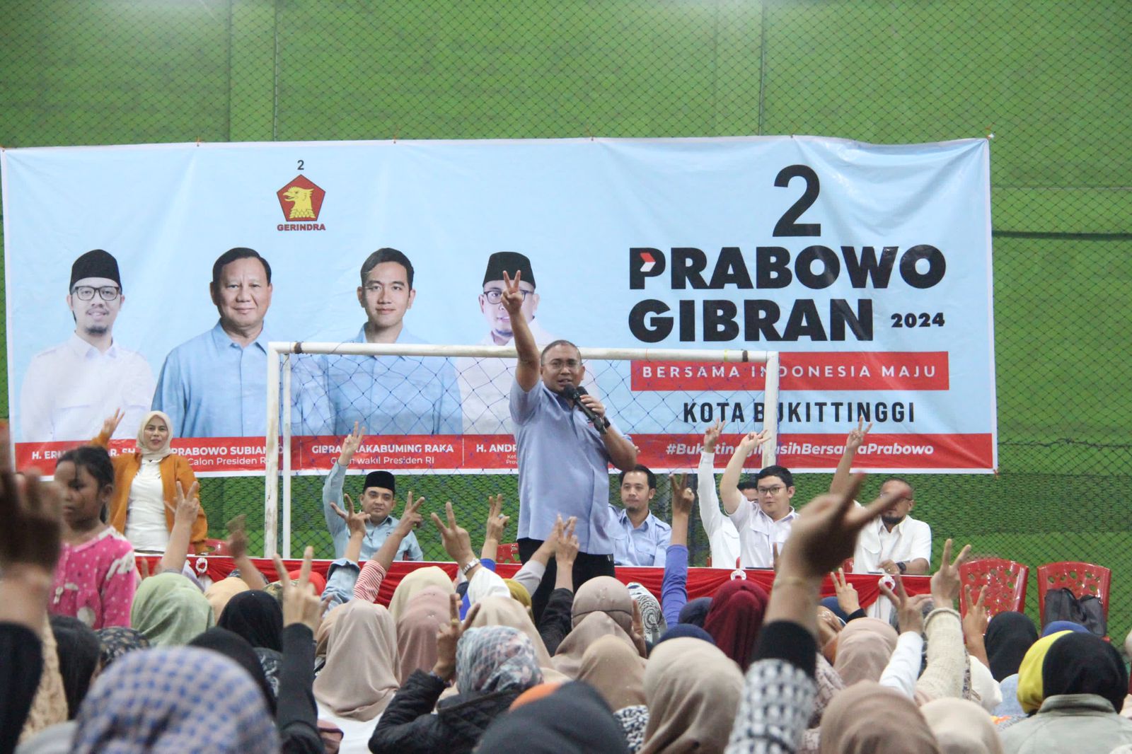 Langgam.id – Ketua Tim Kampanye Daerah (TKD) Prabowo Subianto-Gibran Rakabuming Raka Sumatra Barat (Sumbar), Andre Rosiade berkampanye di Kota Bukittinggi pada Rabu (20/12/2023).