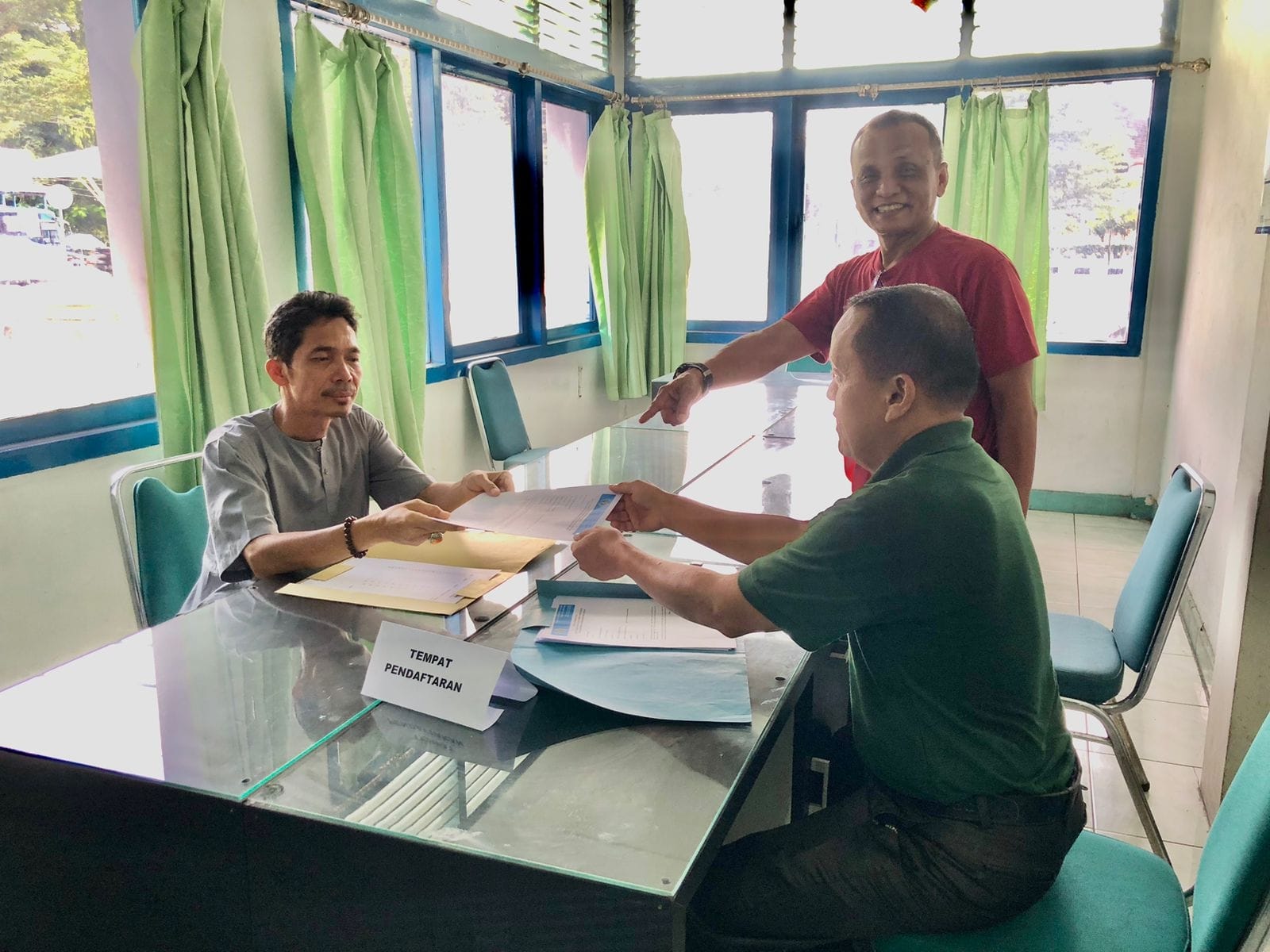 Kehadiran Kando Emil sesaat mengambil formulir, di Sekretariat PWI Sumbar Jumat siang disambut Ketua Seksi Registrasi & Pendaftaran Balon Ketua Harian dan DKP, Eriyanto Leo serta dua anggotanya, Lailatul Aidil juga Susi Suzanna.