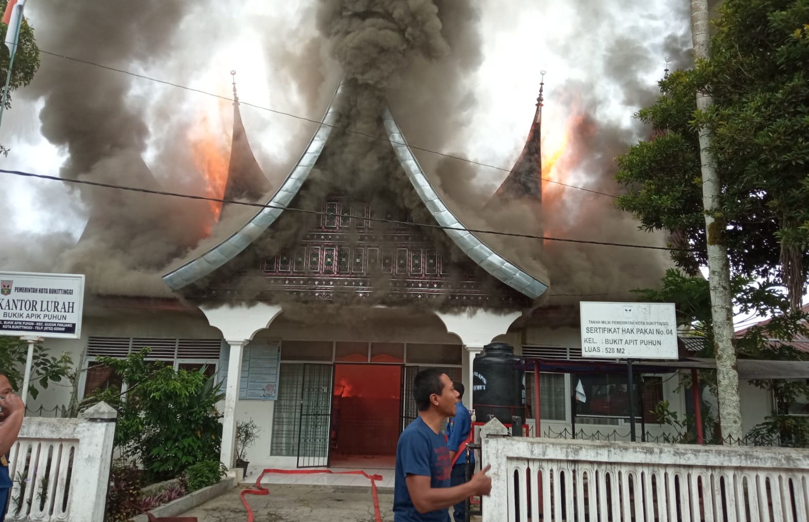 Berita Bukittinggi – berita Sumbar terbaru dan terkini hari ini: Api melahap Kantor Lurah Bukit Apit Puhun, Kota Bukittinggi, Sabtu (9/4/2022), sekira pukul 07.45 WIB