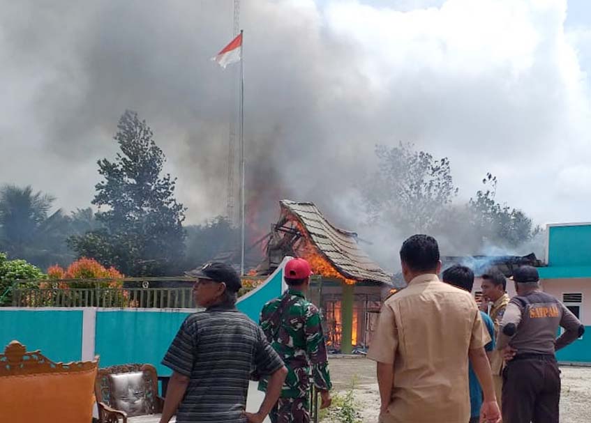 Langgam.id – Kebakaran melanda Kantor Wali Nagari Muaro Sopan, Kecamatan Padang Laweh, Kabupaten Dharmasraya, Sumatra Barat (Sumbar), Senin (1/8/2022). Api melahap seluruh bagian bangunan beratap gonjong tersebut.