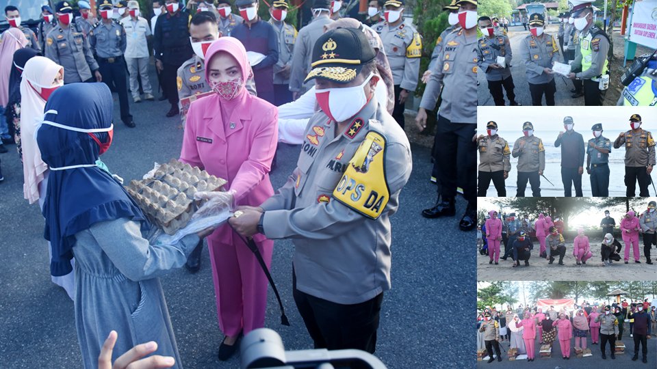 Selain membagikan sembako, Kapolda Sumbar juga membagikan masker kain “Merah Putih” kepada petugas Kepolisian yanga ada di Polres Pariaman dan masyarakat setempat, serta melepas anak penyu “Tukik” di lepas Pantai Apar, Penangkaran Penyu,