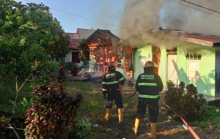 “Laporan masyarakat Via Padang Command Center 112, Hari Sabtu, 26 Agustus 2023. Laporan: 07.11 WIB, tim datang: 07.18 WIB, selesai penanganan: 07.48 WIB. Kejadian: Kebakaran 1 rumah dan 4 kontrakan,” tulis PCC 112.