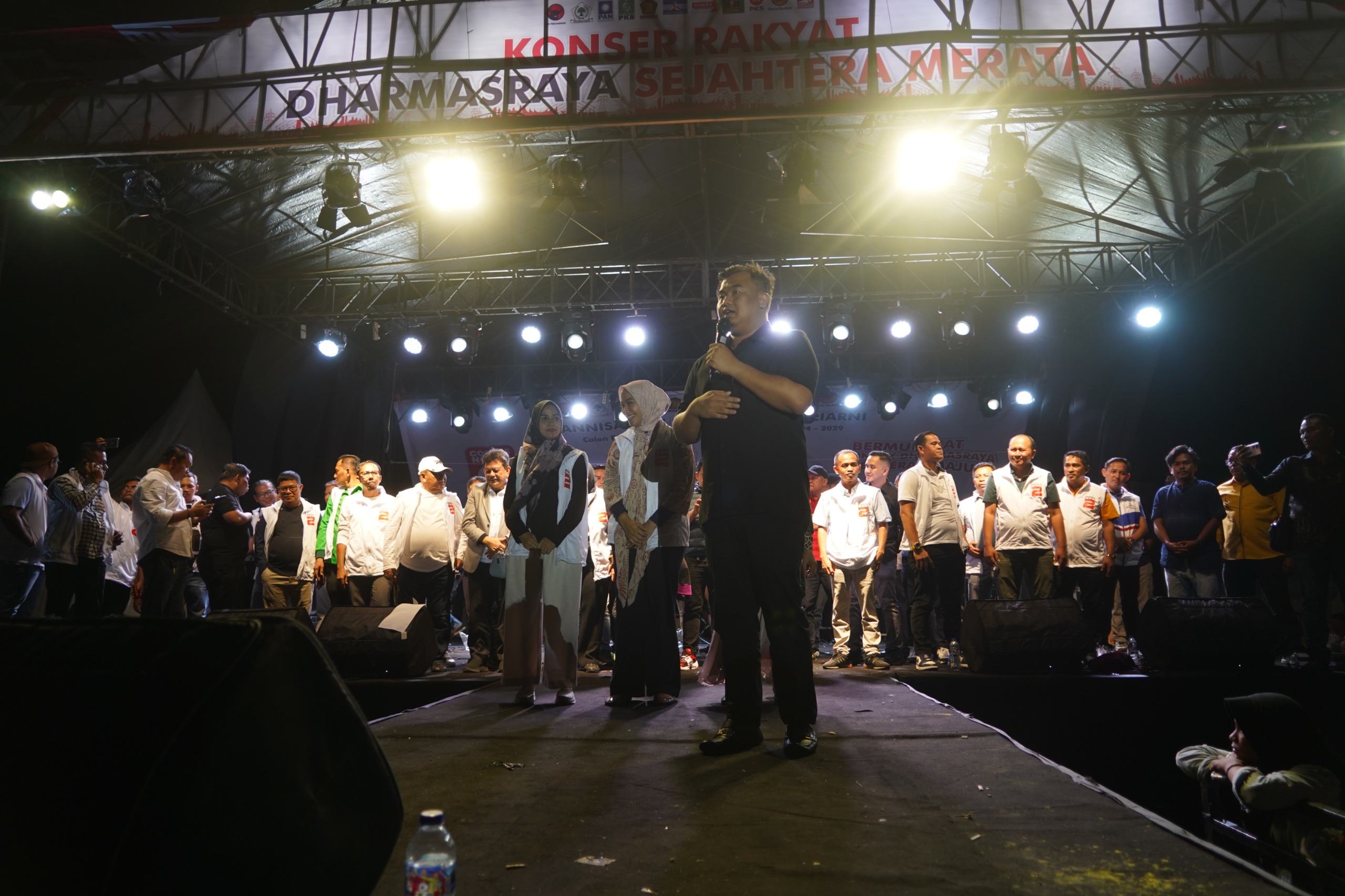 Bupati Dharmasraya dua periode itu menyampaikan dukungannya saat konser rakyat yang digelar di lapangan pasar blok B, Sitiung 1, Kabupaten Dharmasraya.