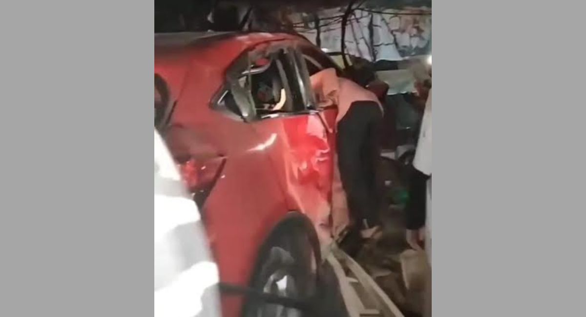 Dari video yang diupload akun Instagram@kabarnegri terlihat seorang pria mendekati satu unit minibus yang terlibat kecelakaan. Pria bertopi itu menjangkau sesuatu di dalam mobil.