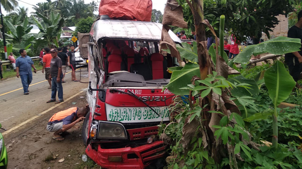 Langgam.id – Kecelakaan beruntun melibatkan bus antar kota antar provinsi (AKAP), truk, dan dua unit sepeda motor di Ujung Tanah, Nagari Aia Gadang, Kecamatan Pasaman, Pasaman Barat, Jumat (17/09/21).