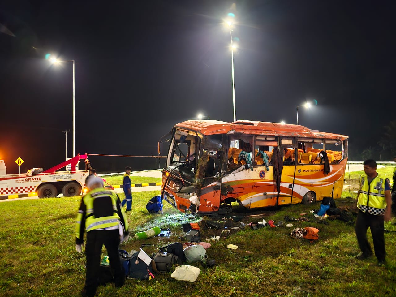 LANGGAM.ID— Dua orang meninggal dalam kecelakaan tunggal bus pariwisata di pintu keluar Jalan Tol Padang Sicincin pada Minggu malam 7 September 2025. Sementara itu, sopir bus tengah diketahui melarikan diri usai kejadian.