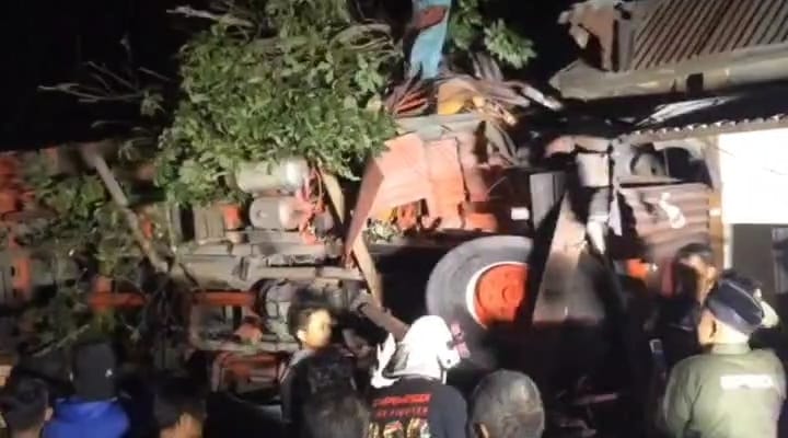 Kecelakaan ini diketahui terjadi pada Kamis (1/7/2021) sekitar pukul 22.50 WIB. Dari video yang didapat langgam.id dari salah seorang warga yang berada di lokasi, truk diduga mengalami rem blong baru berhenti setelah terbalik lantaran menabrak pagar hingga rumah warga.