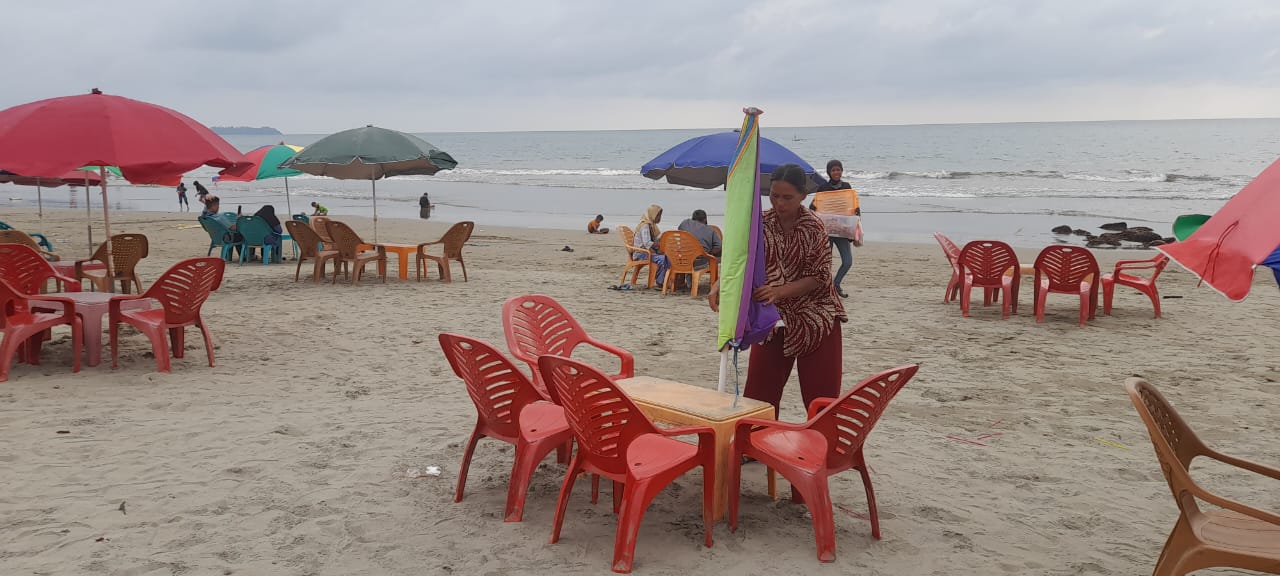 Sebenarnya, dahulu PKL ini sudah kita relokasi ke LPC, akan tetapi karena Covid-19 dan faktor ekonomi yang menurun mereka kembali  lagi berjualan di bibir pantai.