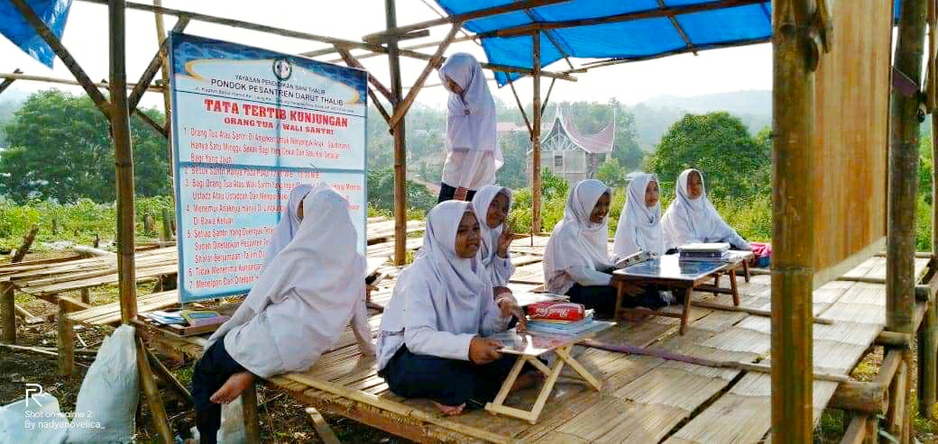 Langgam.id – Puluhan satri pondok pesantren (ponpes) Darut Thalib di Kota Solok, Sumatra Barat (Sumbar) terpaksa belajar di bawah tenda darurat. Konon, kondisi sudah berlangsung sejak satu bulan terakhir.