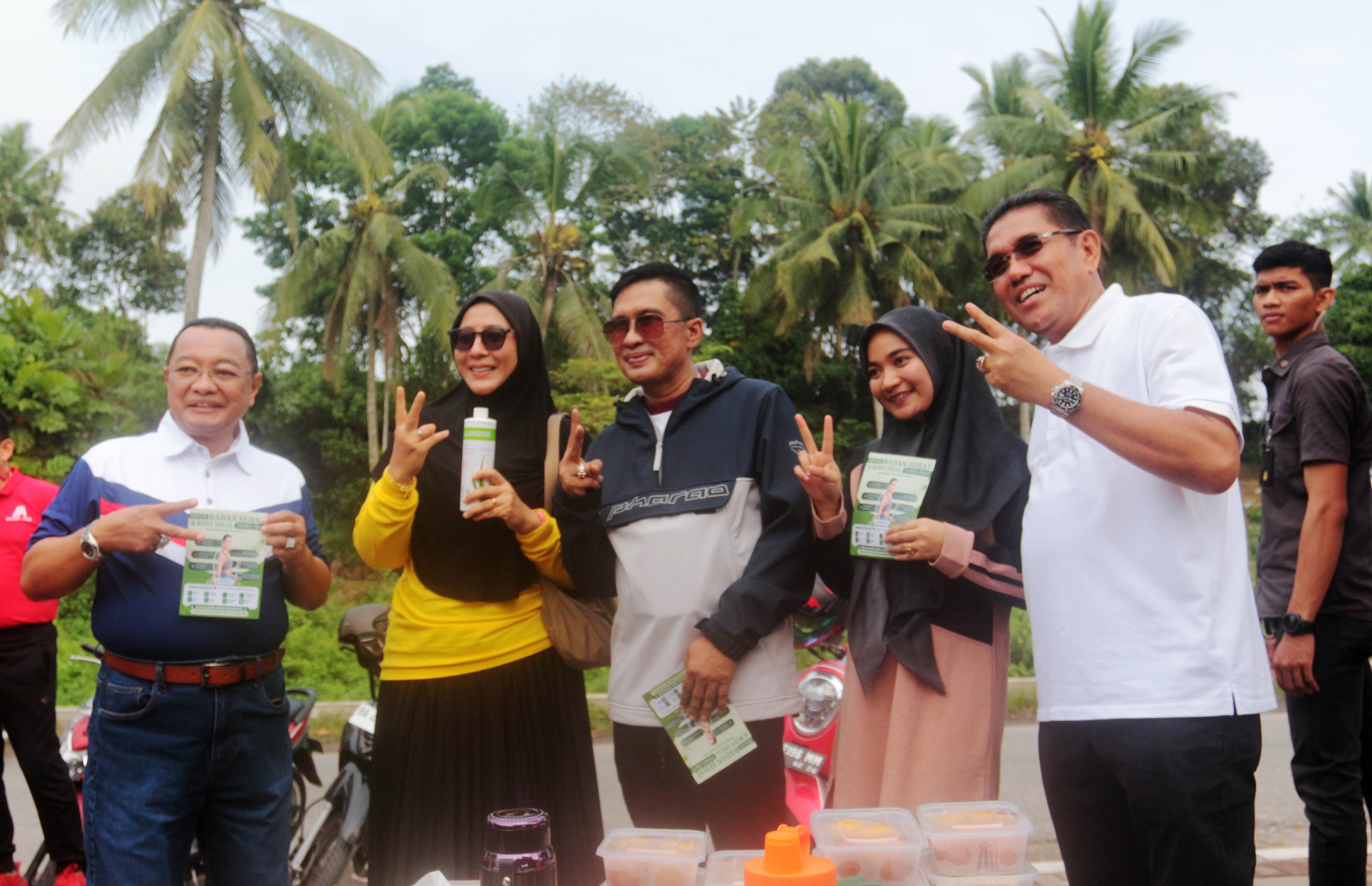 Tak hanya menyapa dan berswafoto, pasangan Epyardi Asda itu mengapresiasi para pelaku UMKM di sekitar lokasi olahraga. Beberapa kali ia membeli dan mempromosikan dagangan para pedagang.