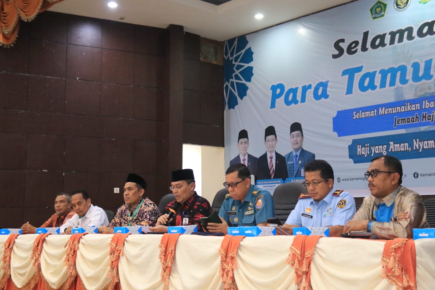Turut hadir Kepala BKK Edy Mawari, Kabag Bina Mental Hendri Hasbullah, Kabid PHU Rifki, Kabid Urais Yosef Chairul, Kabid Penais Zawa Abrar Munanda, Kepala UPT Asrama Haji Afrizen, Direktur Gapura, perwakilan Lion Air, Perwakilan Imigrasi, serta PPIH dan P3IH Embarkasi Padang.
