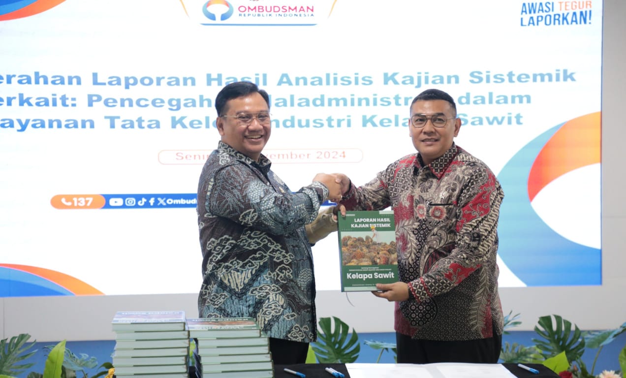 InfoLanggam – Wakil Menteri Agraria dan Tata Ruang/Wakil Kepala Badan Pertanahan Nasional (ATR/BPN), Ossy Dermawan menerima Laporan Hasil Kajian Sistemik tentang Pencegahan Maladministrasi dalam Layanan Tata Kelola Industri Kelapa Sawit dari Ombudsman Republik Indonesia (ORI), Senin (18/11/2024).
