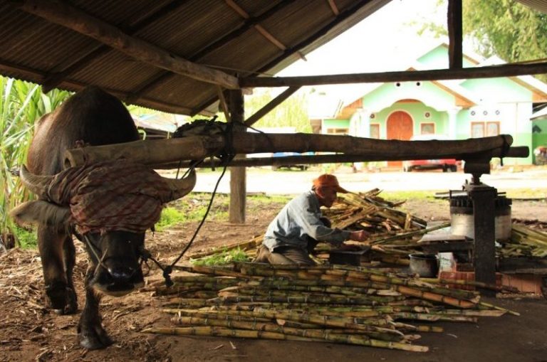 Salah seorang pemilik penggilingan tebu tradisional di Jorong Gajah Mati, Nagari Lawang, Deswarina, menyampaikan proses penggilingan tebu menggunakan tenaga kerbau sudah menjadi tradisi turun temurun. Untuk proses penggilingan tebu caranya dengan mengikatkan sebatang kayu ke pundak kerbau dan kayu itu terhubung ke alat penggilingan.
