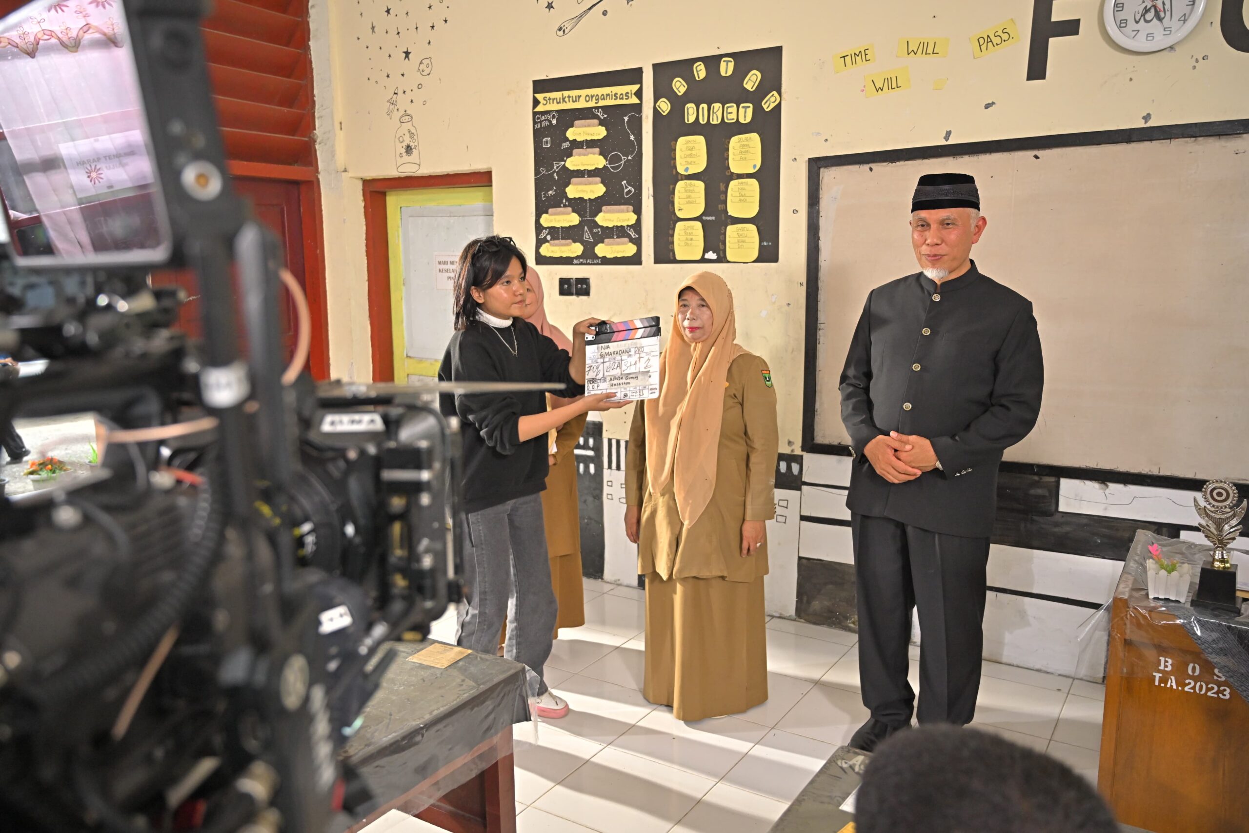 Langgam.id – Gubernur Sumatera Barat (Sumbar), Mahyeldi Ansharullah, menghadiri proses syuting film “Tragedi Nia Kurniasari” yang berlangsung di SMA INS Kayu Tanam, Kabupaten Padang Pariaman.