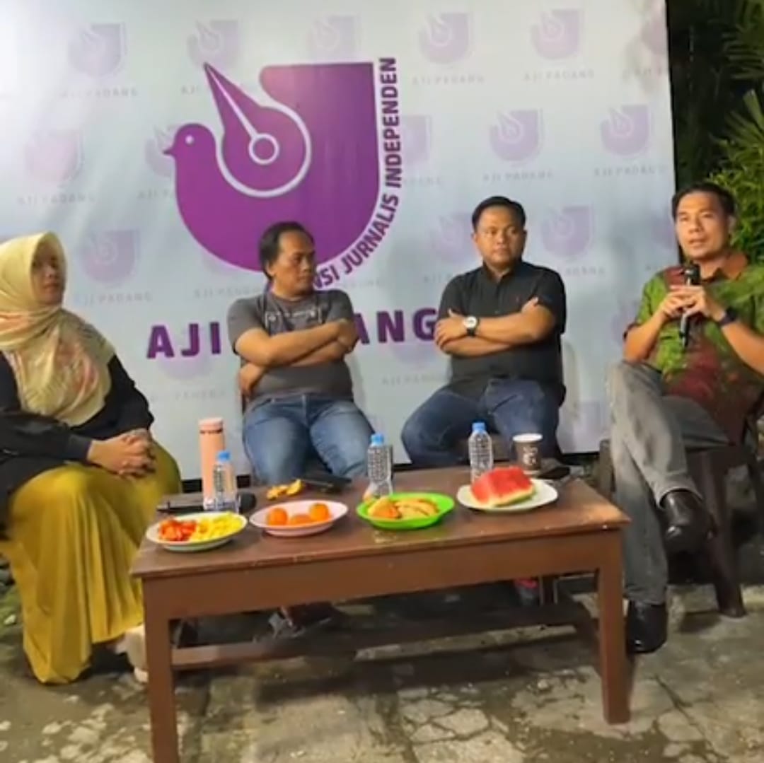 Diskusi ini dihelat di Sekretariat AJI Padang pada Sabtu (14/9/2024) malam, dengan menghadirkan sejumlah narasumber penting, seperti Nashrian Bahzein dari AJI Padang, M Khadafi dari Bawaslu Sumbar, dan Asrinaldi, akademisi politik dari Universitas Andalas. Diskusi ini dipandu oleh Sucy Delyarahmi.