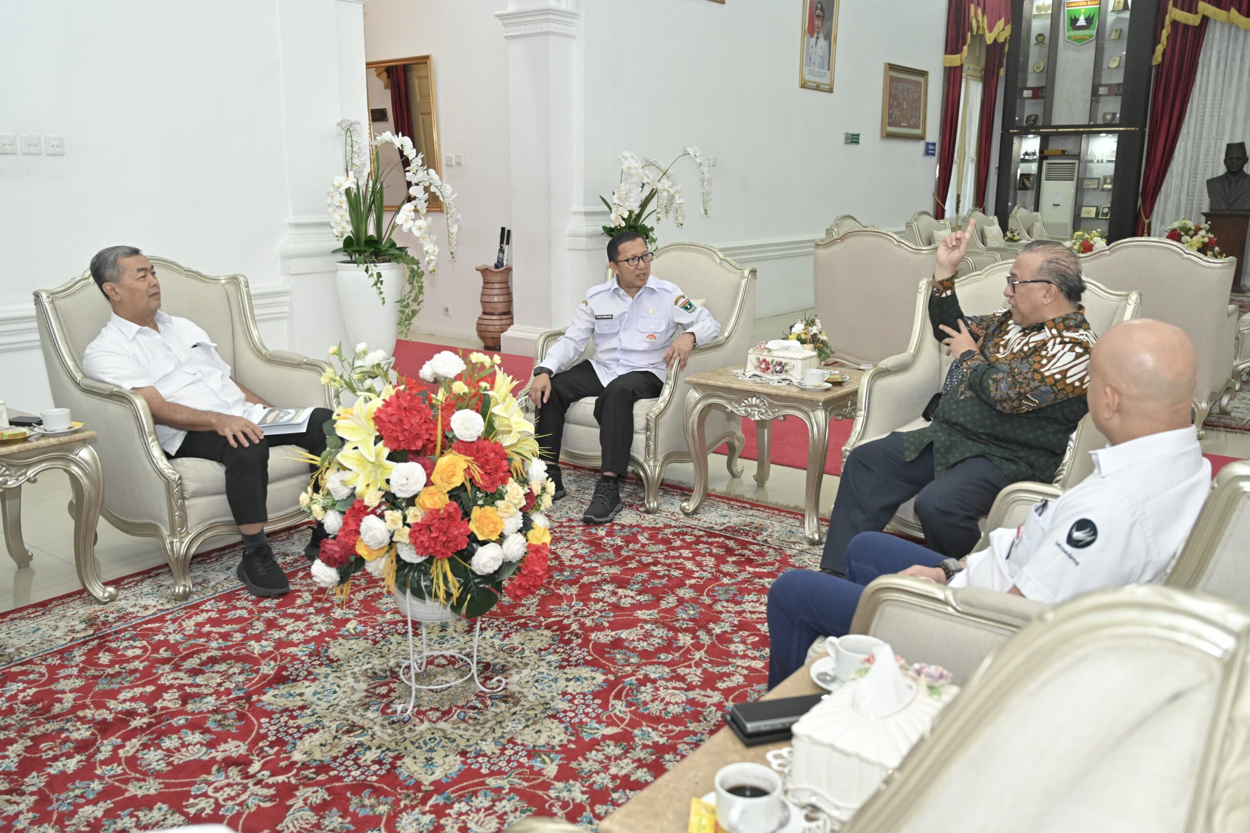 Guna mematangkan persiapan acara, Penjabat Sekretaris Daerah (Pj. Sekda) Provinsi Sumbar, Yozawardi Usama Putra menerima kunjungan Ketua IHLC, Sapta Nirwandar dan Rektor Universitas Baiturrahmah, Prof. Musliar Kasim di Istana Gubernuran Sumbar, Rabu (22/1/2025).