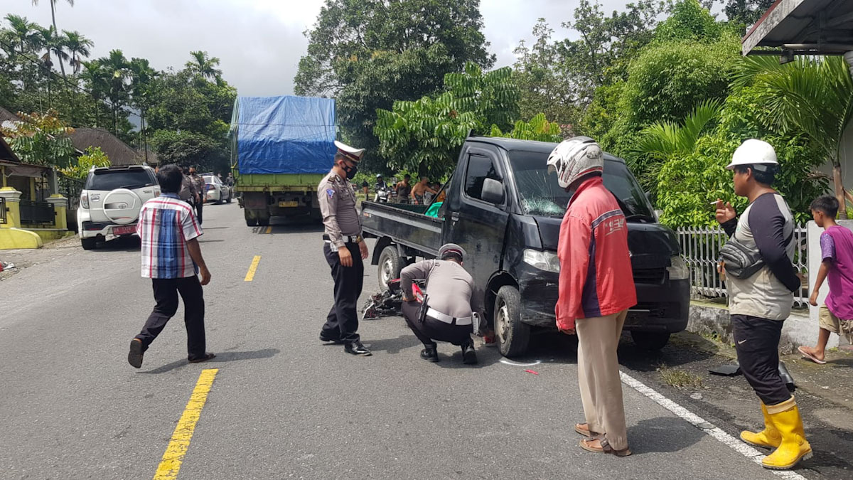 “Kejadian berawal ketika minibus pikap Grand Max melaju dari arah Bukittinggi menuju arah Padang. Sesampai di lokasi, datang sepeda motor yang dikendarai korban dari arah berlawanan,” kata Rudi, Selasa (28/9/2021).