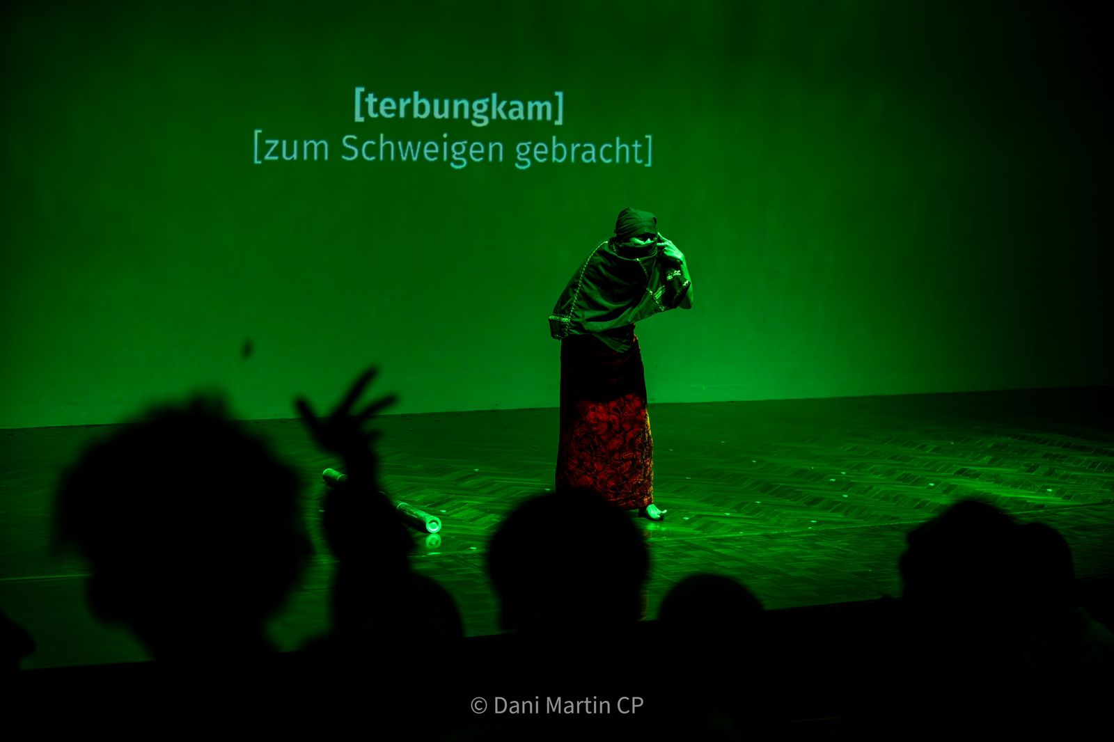 Cahaya di panggung meredup. Siska mengambil sarawa galembong (celana silat Minangkabau) berwarna hitam dan menyarungkannya ke kepala, menutupi sebagian tubuhnya. Gerakan ini menggambarkan kebingungan arah seorang perantau di tanah orang, tak mampu melihat jalan pulang.