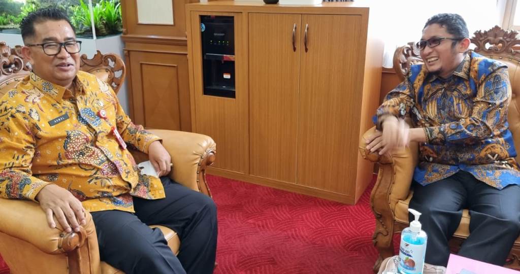 Wali Kota Padang Hendri Septa (kanan) di Kantor Kementerian Dalam Negeri Jakarta Pusat, Selasa (07/12/2021). (Dok. Prokopim Padang)