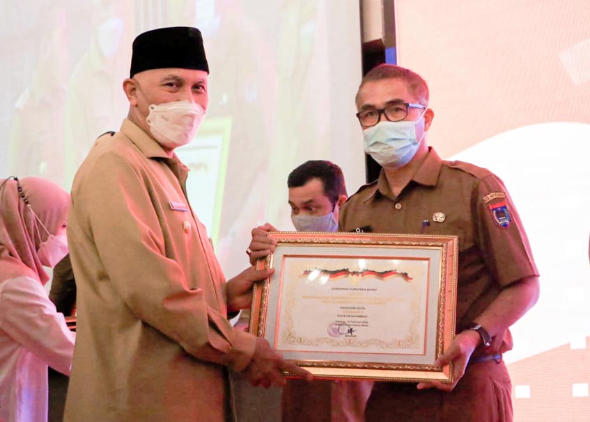 Penghargaan bergengsi itu diserahkan langsung oleh Gubernur Sumatra Barat, Mahyeldi Ansharullah kepada Wali Kota Riza Falepi yang diwakili oleh Sekretaris Daerah Rida Ananda saat Musrenbang RKPD Provinsi Sumatra Barat tahun 2023 yang digelar di Hotel Pangeran Beach, Kota Padang, Senin (28/3/2022).