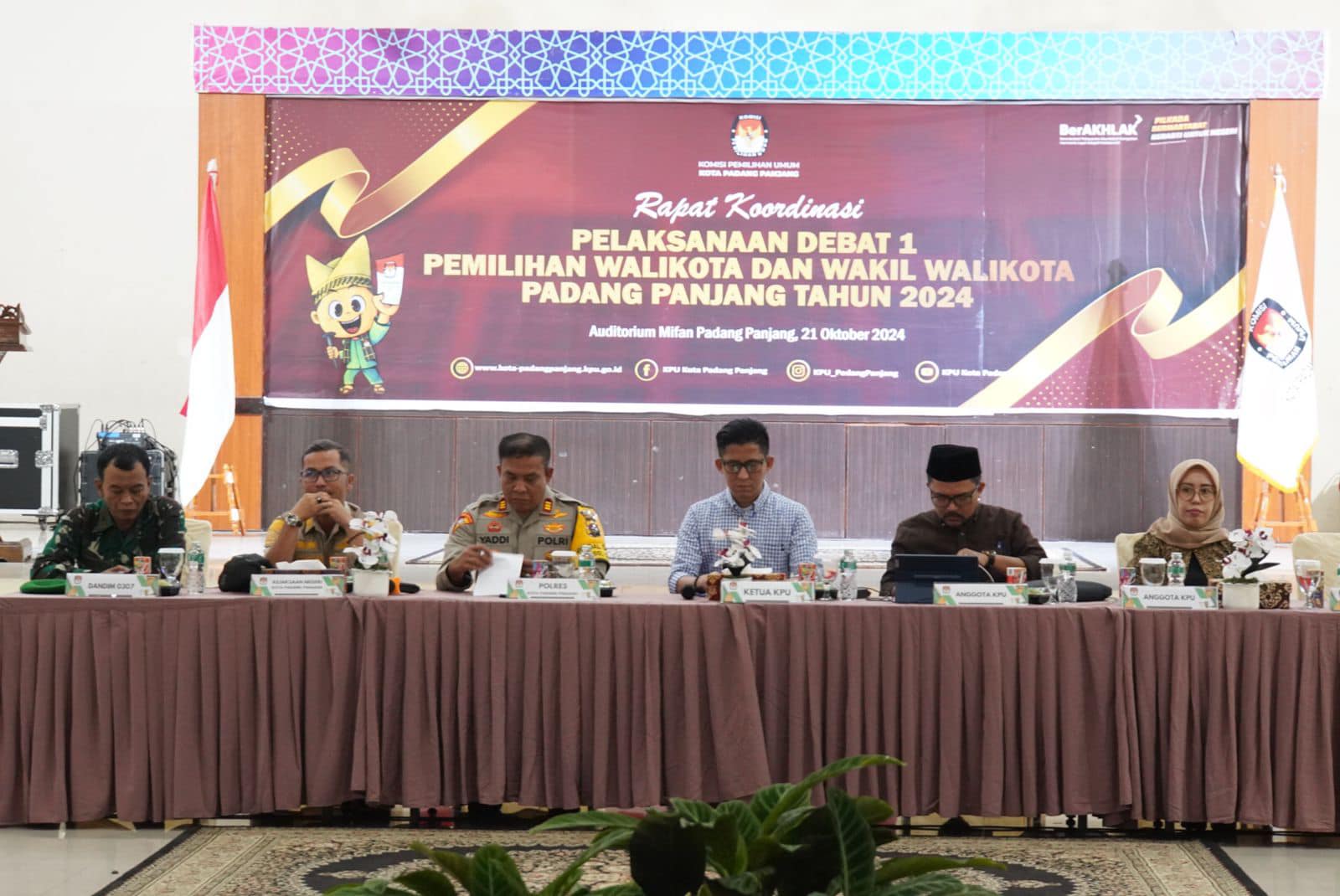 Sebelum debat pertama pasangan calon (paslon) di Pilkada 2024, KPU Padang Panjang mematangkan persiapan dengan menggelar rapat koordinasi (Rakor) di Auditorium Mifan Waterpark pada Senin (21/10/2024).