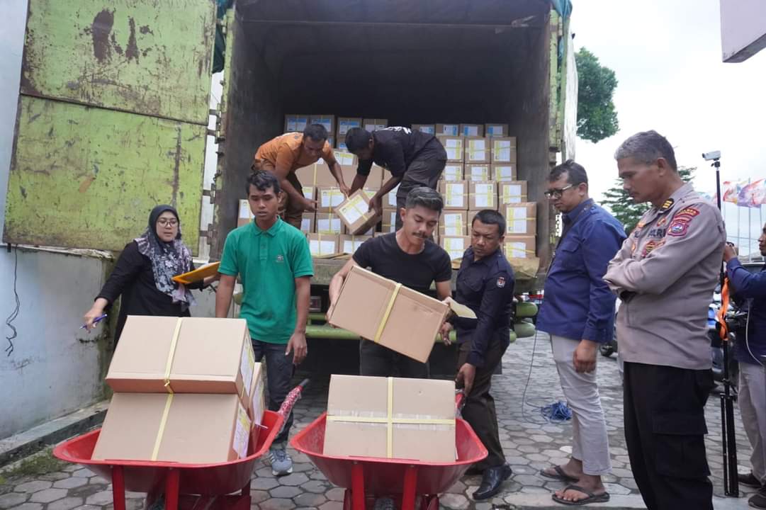 Pj Wako Sonny mengatakan, kedatangan logistik surat suara ini perlu menjadi perhatian bersama untuk mengawal proses penyimpanannya agar semaksimal mungkin.