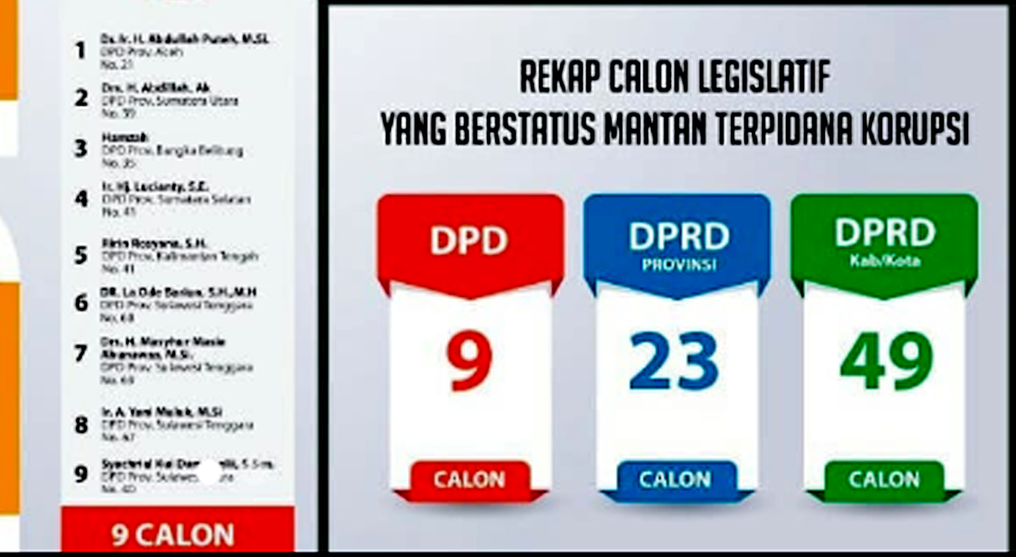 Baca juga: KPU Umumkan 49 Caleg Mantan Terpidana Korupsi, Nihil dari Sumbar