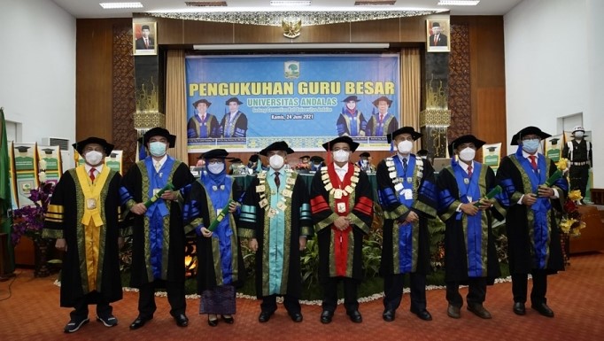 “Pengukuhan ini memang lebih bersifat seremonial akademik, tetapi dibalik itu juga terkandung simbol kemajuan dan peningkatan kualifikasi dosen Universitas Andalas,” sambungnya.