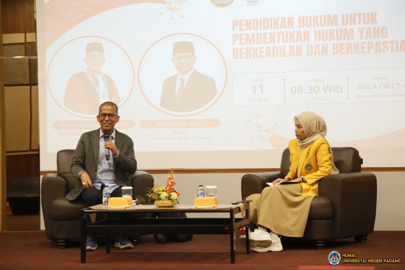 Hal ini disampaikannya dalam kuliah umum bertema “Pendidikan Hukum untuk Pembentukan Hukum yang Berkeadilan dan Berkepastian” yang digelar Jumat (11/7/2025) di Aula Lantai 4 Fakultas Ilmu Sosial (FIS) UNP.