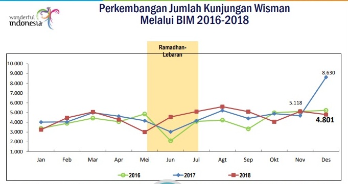 Tingkat hunian kamar hotel berbintang misalnya pada Desember 2018 misalnya turun 6,3 poin bila dibandingkan dengan Desember 2017. Tingkat hunian hotel berbintang pada Desember 2018 hanya 58,59 persen, di bawah tingkat hunian pada Desember 2017 yang mencapai 64,89 persen.