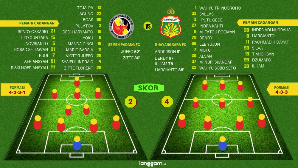 Lalu, di menit ke-89, Muhammad Hargianto, pemain Bhayangkara bobol gawang Semen Padang FC yang membawa kemenagan untuk The Guardian 4-2.