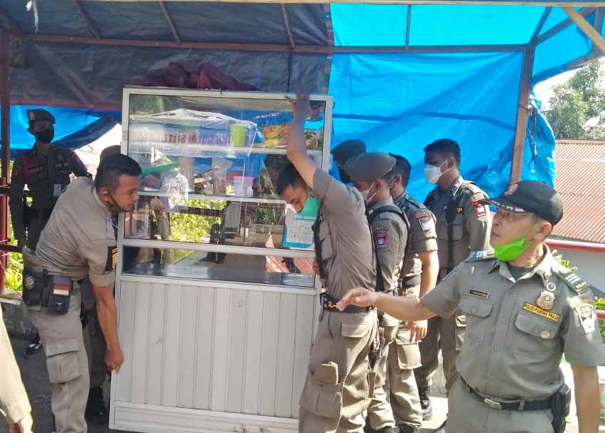 Pasukan penegak Peraturan Daerah (Perda) itu kembali membongkar lapak PKL di kawasan itu, Jumat (28/1/2022).