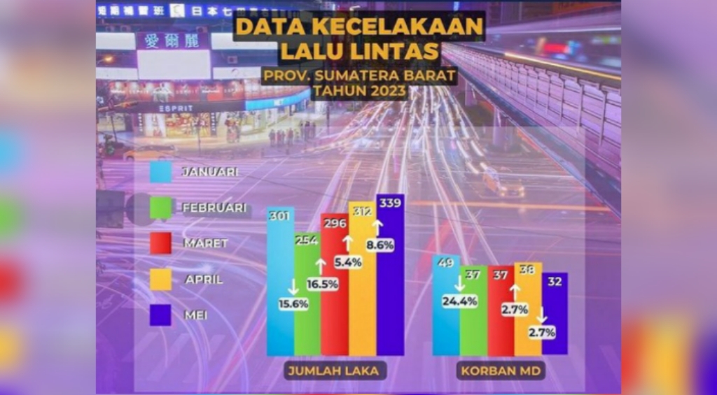 Berikut data kecelakaan lalu lintas di Sumbar pada Mei 2023: