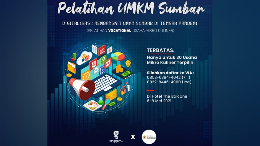 Langgam.id – Kementerian Koperasi dan Usaha Kecil dan Menengah (Kemenkop UKM) dan Langgam.id akan menggelar pelatihan bagi usaha mikro sektor kuliner pada 29 April-1 Mei 2021 di Hotel The Balcone, Bukittinggi.