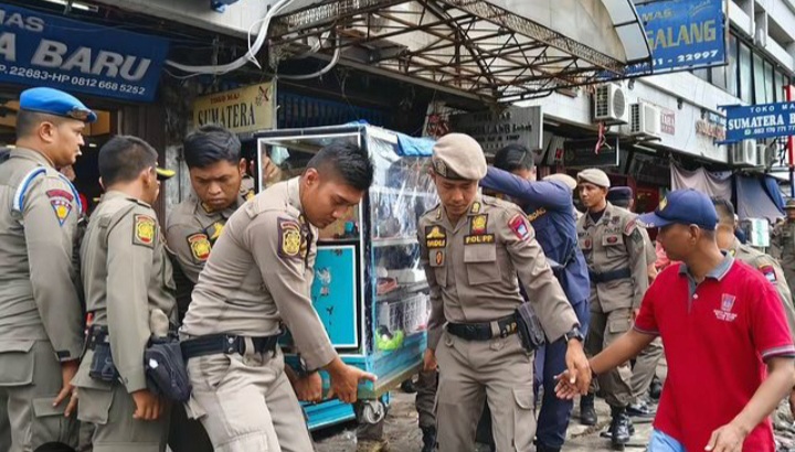 Rozaldi mengungkapkan, ada puluhan barang bukti yang diamankan tadi. Mulai dari lapak milik pedagang, kursi, meja, hingga payung yang sedang terpasang.