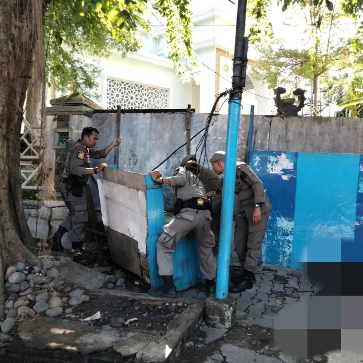 Penertiban itu dilakukan petugas karena pemilik bangunan telah melanggar Perda 11 tahun 2005 tentang Ketertiban Umum dan Ketentraman Masyarakat.