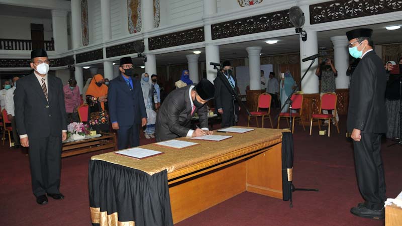 Langgam.id – Gubernur Sumatra Barat Irwan Prayitno melantik empat pejabat eselon II pemerintah provinsi, di Aula Kantor gubernur, Jumat (4/9/2020). Empat pejabat itu adalah dua kepala dinas (kadis) dan dua kepala biro (karo). Saat memberi arahan, Irwan meminta pejabat yang baru dilantik untuk tidak kasak-kusuk dan berambisi.