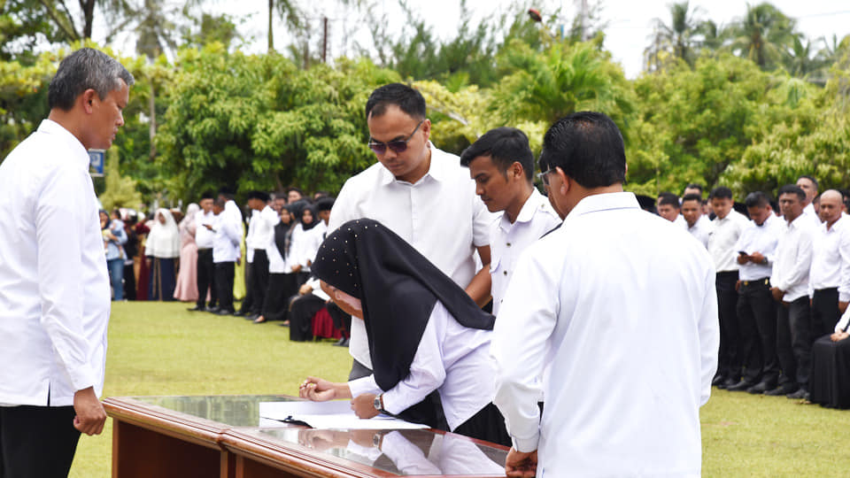 Para PPPK kemudian mengikuti pengambilan sumpah jabatan yang dipimpin oleh Roberia. Sebagai tanda resmi pengangkatan, setiap PPPK menandatangani Surat Pernyataan Pelantikan serta Surat Pernyataan Melaksanakan Tugas.
