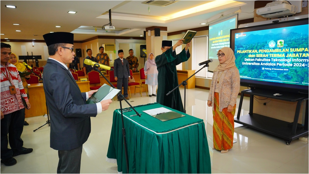 Langgam.id – Rektor Universitas Andalas (Unand) Efa Yonnedi melantik Lusi Susanti sebagai Dekan Fakultas Teknologi Informasi (FTI) periode 2024-2029.